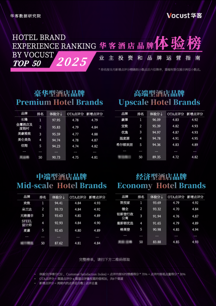 完整榜单还包含酒店品牌体验榜TOP50全名单、各品牌点评内容深度拆解、渠道运营策略建议等核心内容。