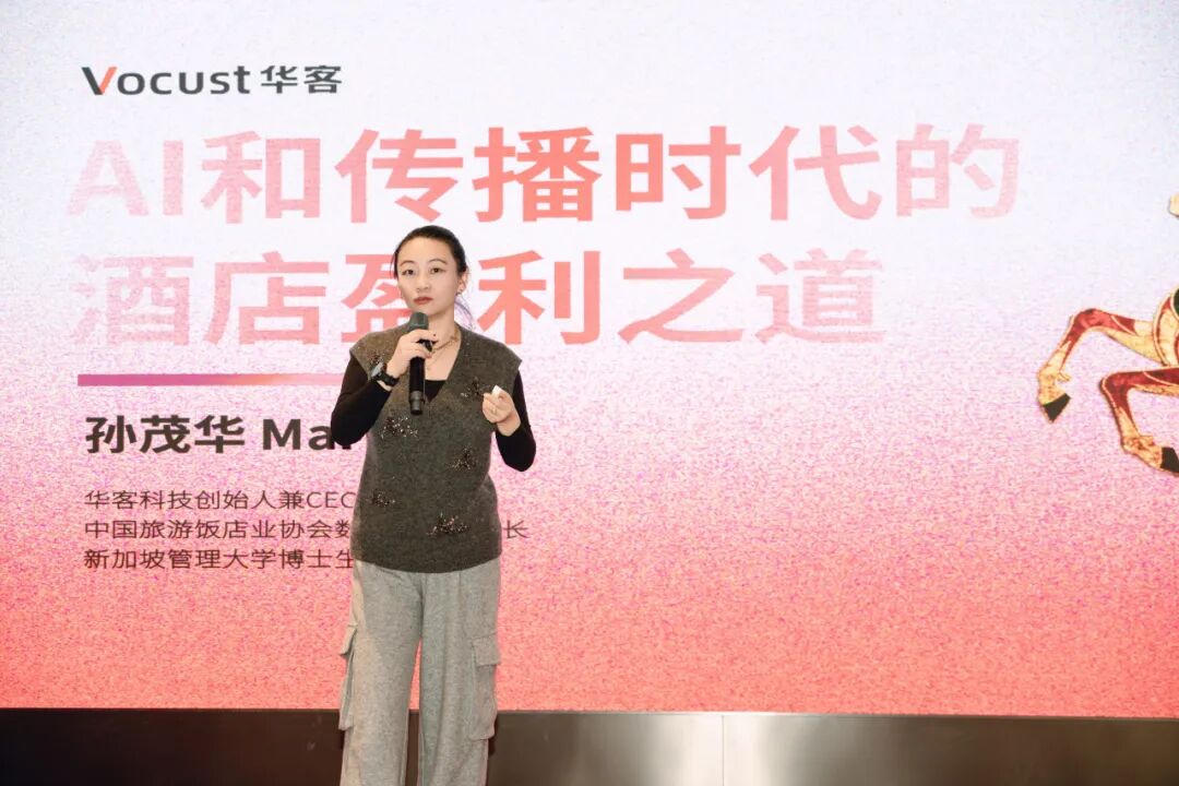 会上,华客科技创始人兼CEO孙茂华以“AI和传播时代,酒店的盈利之道”为主题发表演讲。她指出,AI带来大脑革命,传播方式变革重塑信息交互逻辑,酒店行业需依托经济、文化、社会、象征四大资本,在变革中把握机遇。
