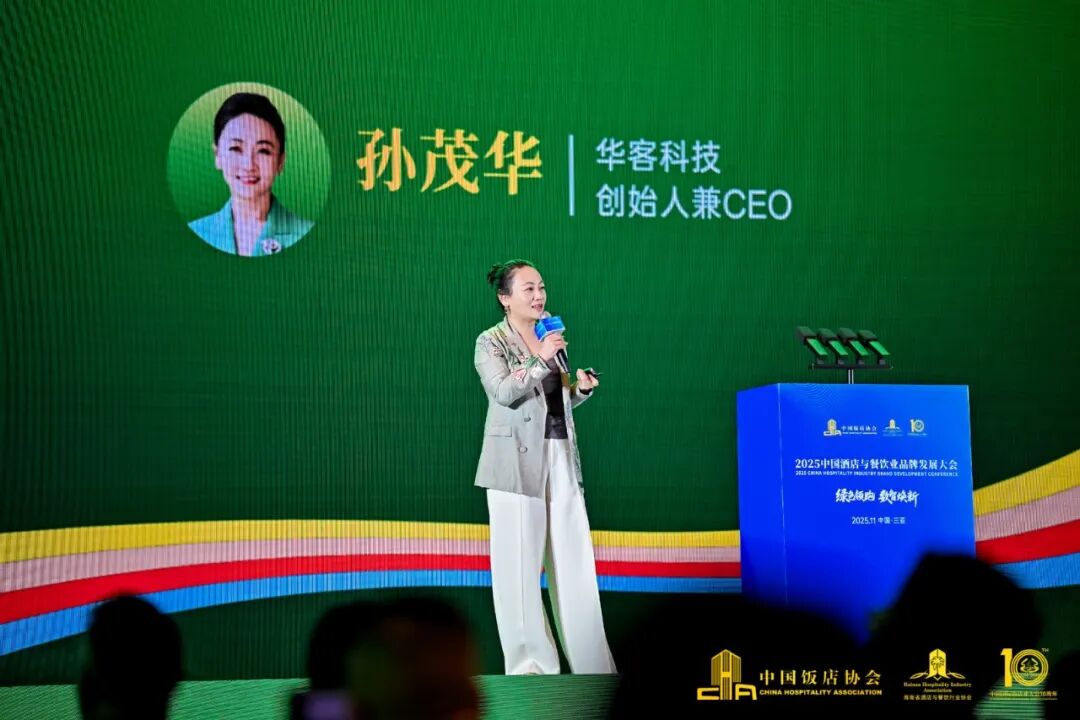 11月27日上午,由中国饭店协会和上海华客信息科技有限公司(以下简称“华客科技”)联合出品的《2025中国住宿业品质服务报告》(以下简称“报告”)在2025酒店餐饮业绿色发展论坛上正式发布,华客科技创始人兼CEO孙茂华Maria女士现场解读。
