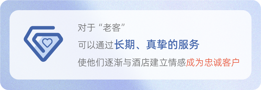 对于商旅出差型或者经常光顾的VIP客人来说,酒店对这一部分客人的习惯、偏好已十分熟悉,应该抓住机会,通过长期、真挚的服务使他们逐渐与酒店建立感情成为忠诚客户,成为酒店的移动口碑。