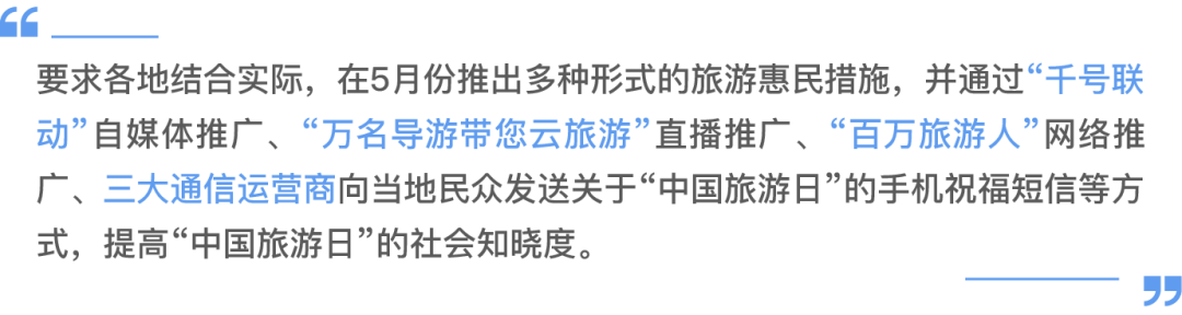 从通知内容来看,今年“中国旅游日”活动是历年来规模和力度最大的一次,为的就是提前为旅游市场恢复做铺垫,做准备,提振旅游业发展的信心。