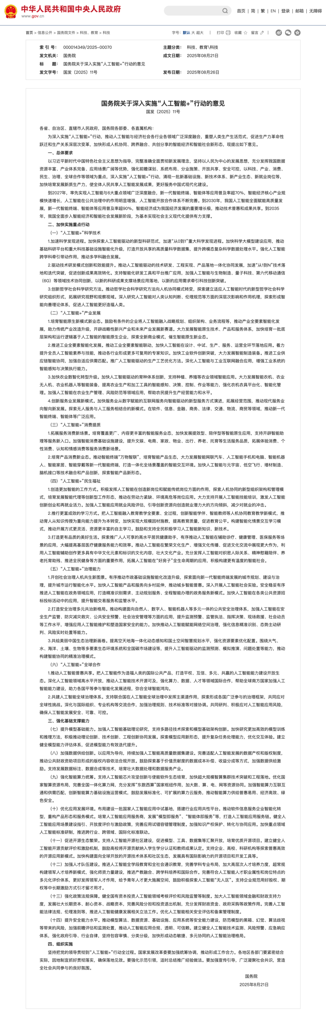 有人说,这份AI新政,比十年前那份创造了一个时代的《关于积极推进“互联网+”行动的指导意见》,还要重要。