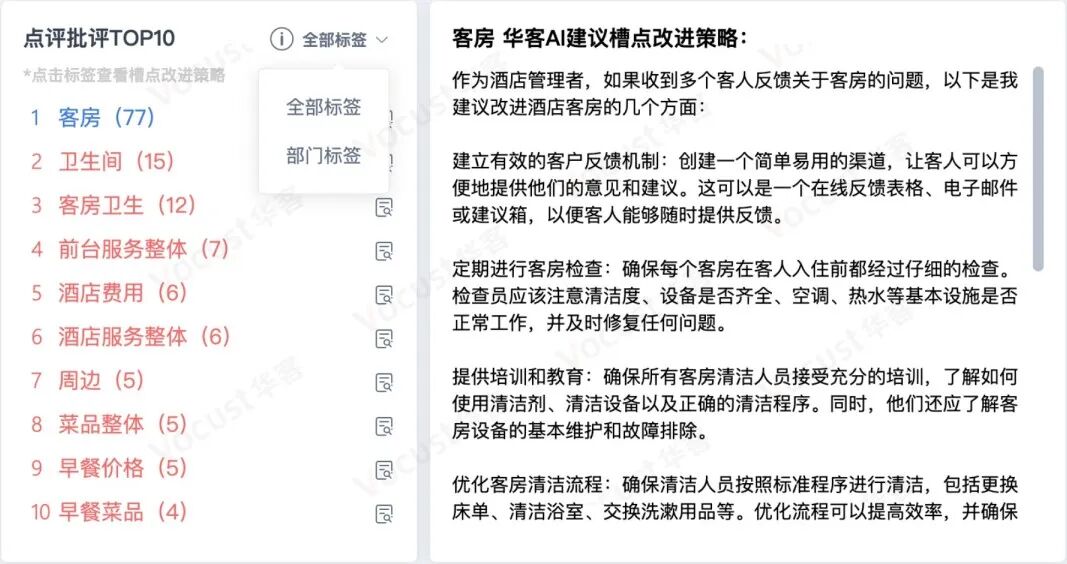 同时,分析差评数据,提炼高频问题(如服务态度生硬、客房装修老旧),针对性优化服务与硬件,形成持续改进的闭环。