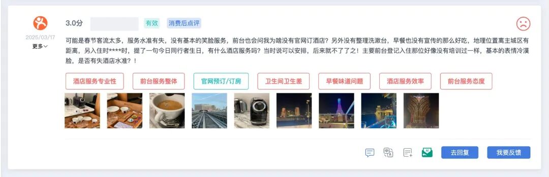 反观社会餐饮的慌乱无措,酒店其实暗藏优势:多年来,酒店客房点评早已形成成熟的管理体系,在应对平台规则、引导真实好评、规避差评等方面,积累了社会餐饮难以比拟的经验。